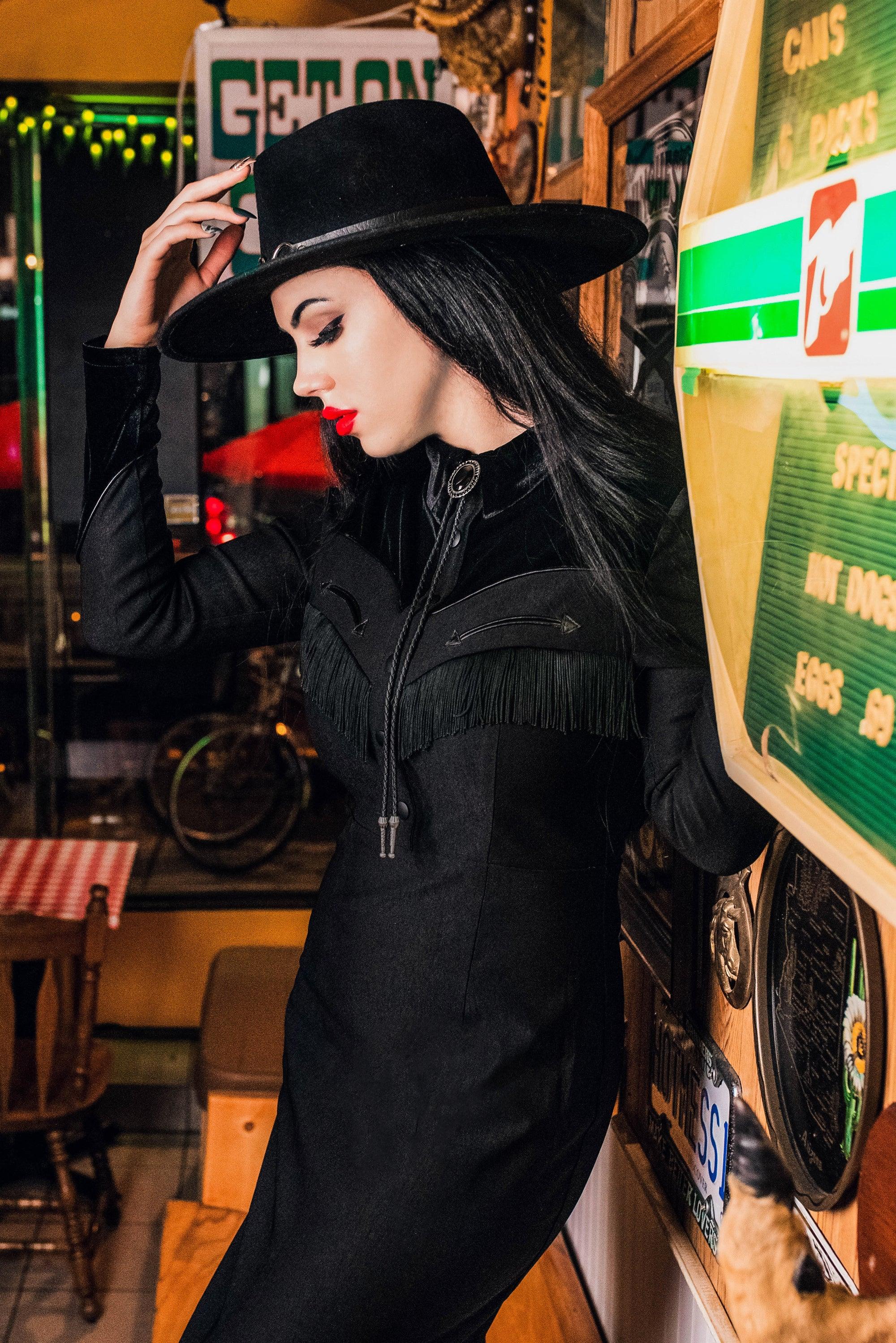 Want to up your cowgirl game? Pair our Loretta Dress with our Western Hats and one of our Bolo Ties to take your outfit to the next level.