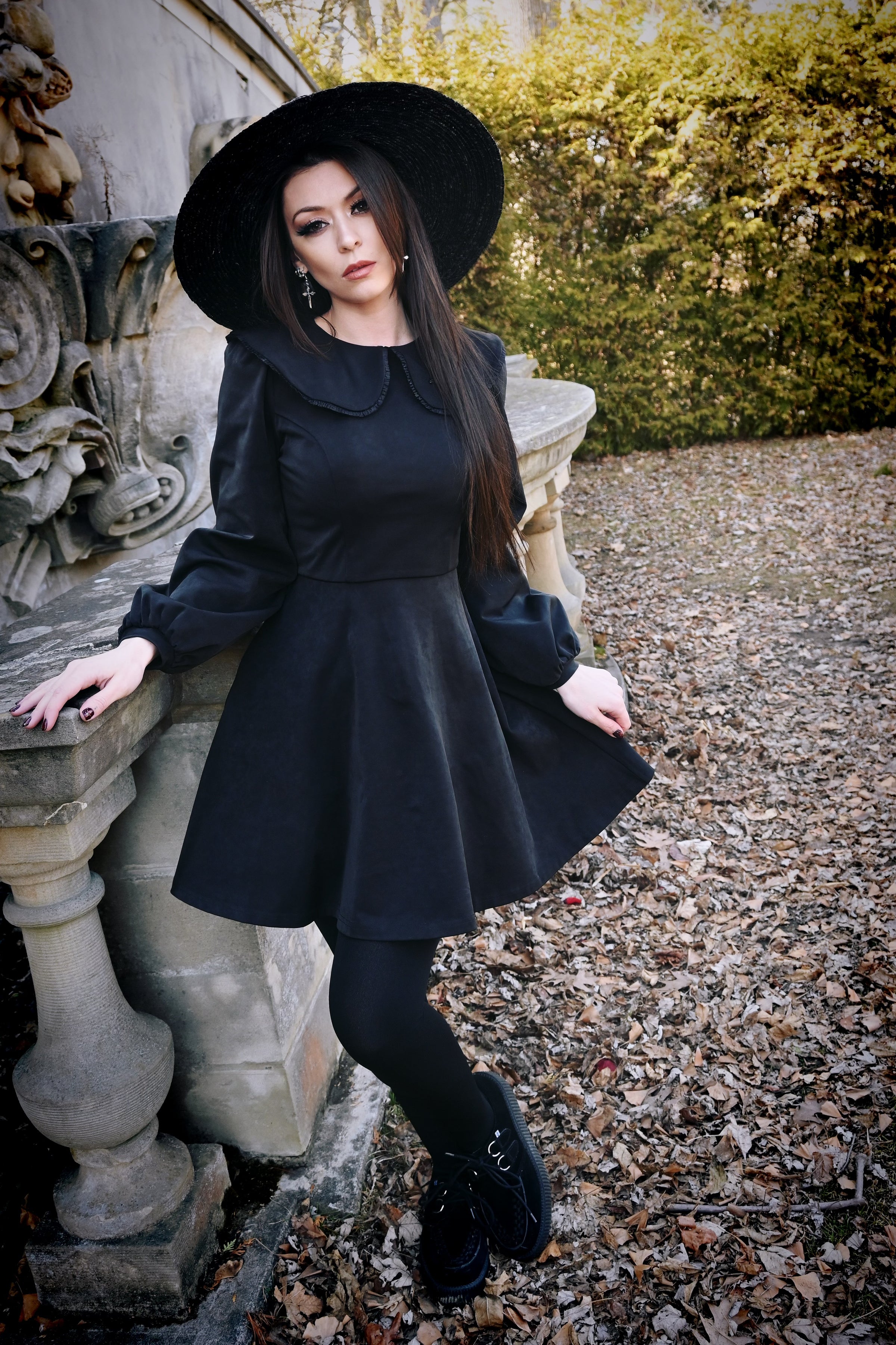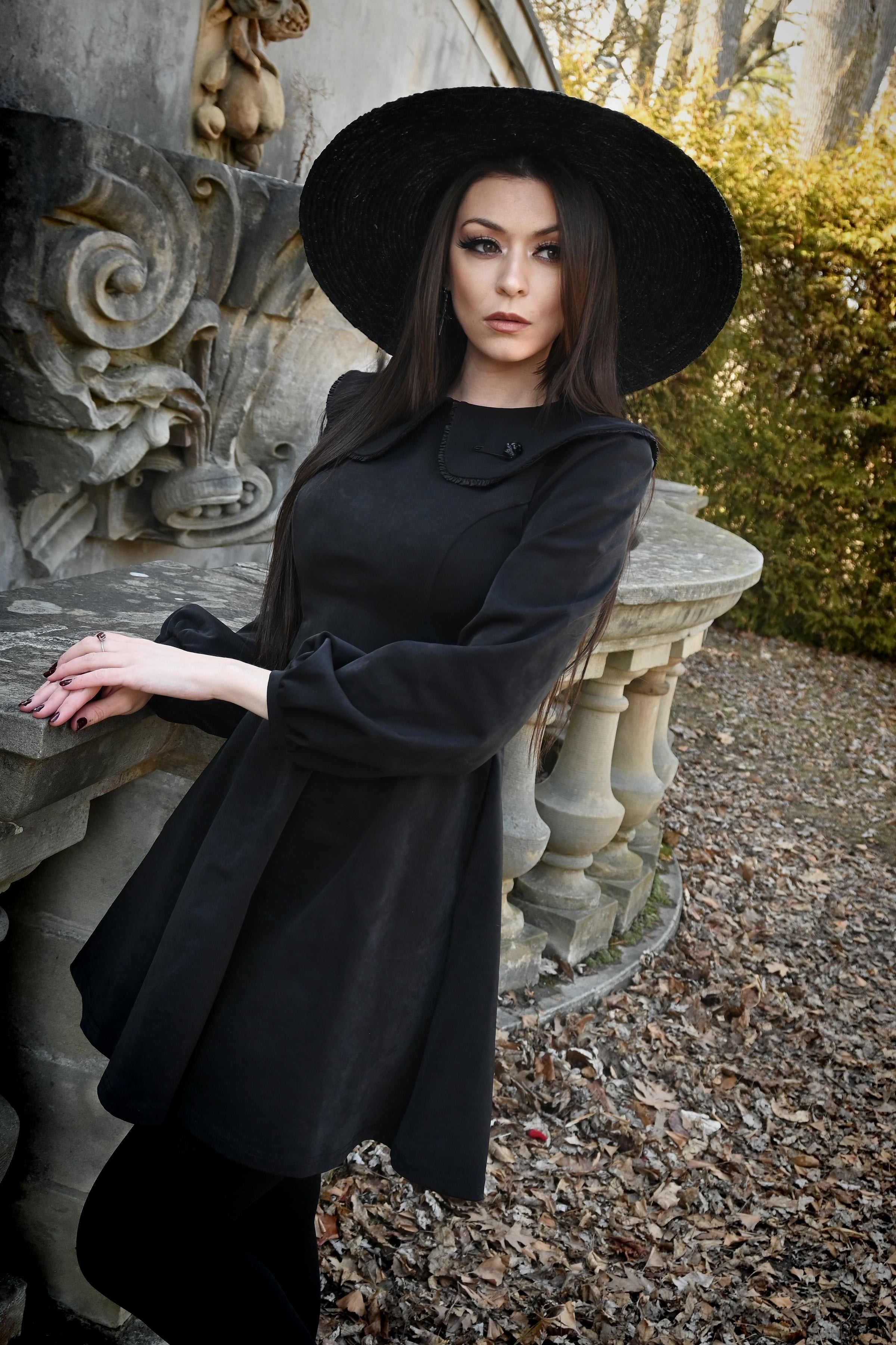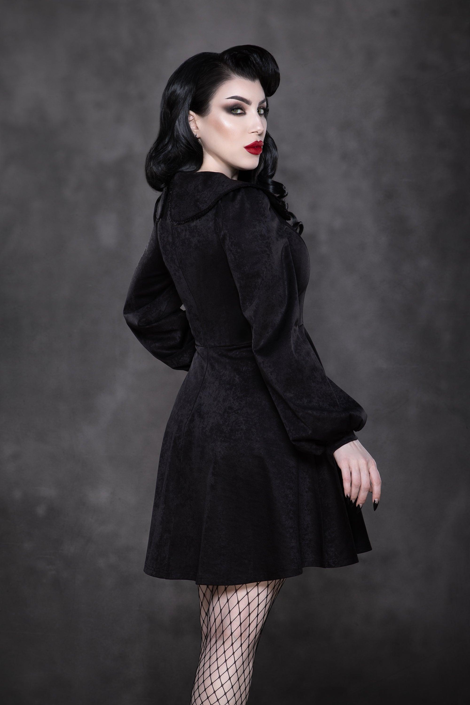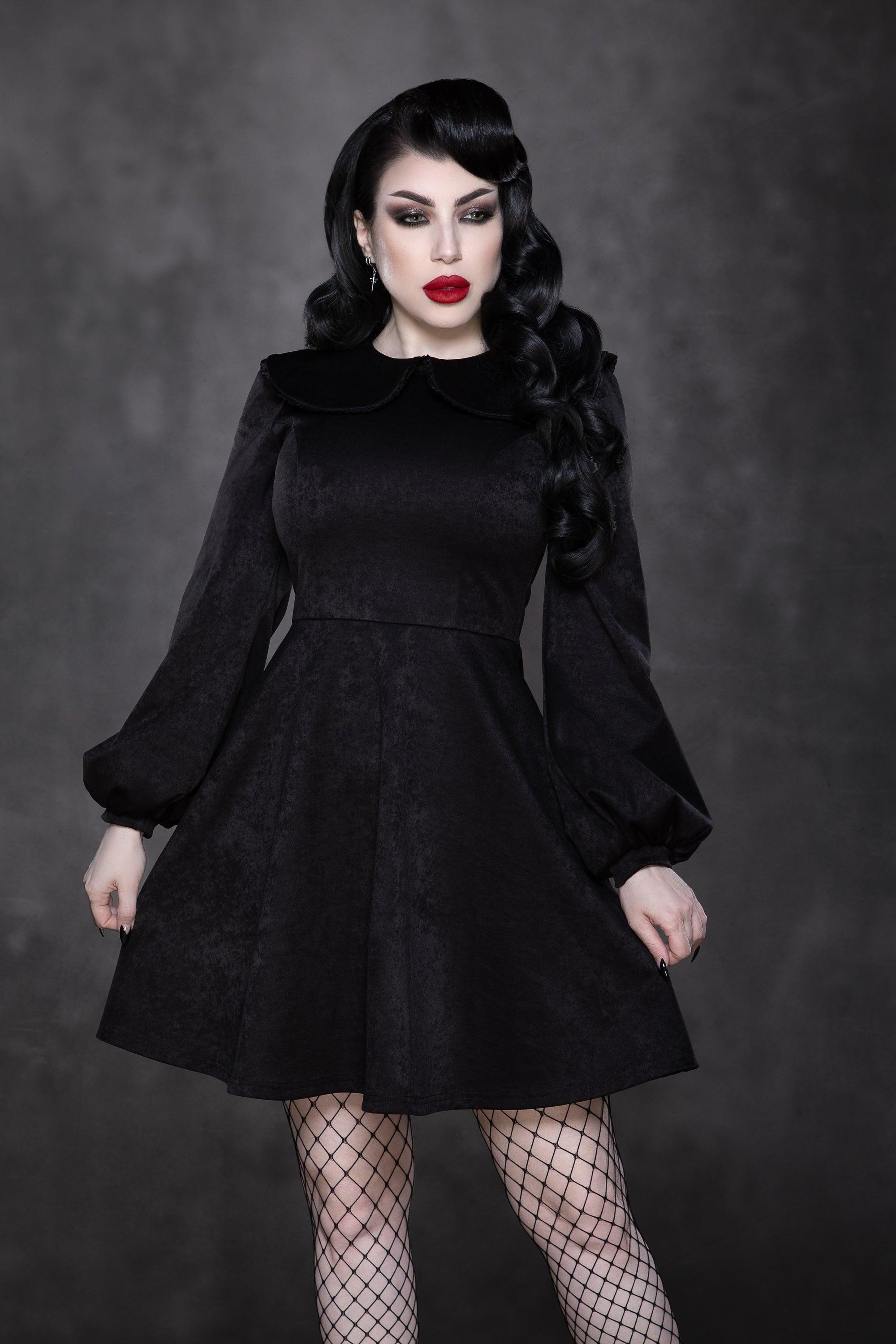A modern nod to the 1960s baby doll silhouette. Crafted in a black soft suede, the Piper Dress features an oversized bib collar, billowing bishop sleeves, and a flattering A-line cut. Hidden side seam pockets add function to its polished design.